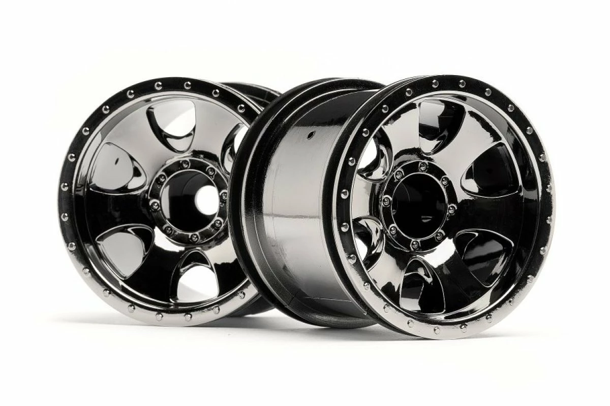 These are perfect for changing the look of your Savage XS, Firestorm or E-Firestorm truck! Available in a range of colors and finishes: #105280 WARLOCK WHEEL BLACK CHROME (2.2in/2pcs) #106722 WARLOCK WHEEL CHROME (2.2in/2pcs) #106724 WARLOCK WHEEL BLACK (2.2in/2pcs) #106726 WARLOCK WHEEL WHITE (2.2in/2pcs) Sold in pairs. The Warlock 1/10th scale wheels are also a direct fit on the Firestorm line of trucks!