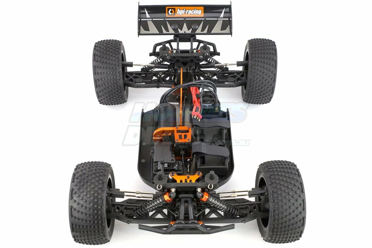After this chassis has been tested and proven with its well-known nitro version of the Trophy Truggy HPI thought it was time to unleash it’s even more powerful electric version of this great 1/8 remote control truggy.