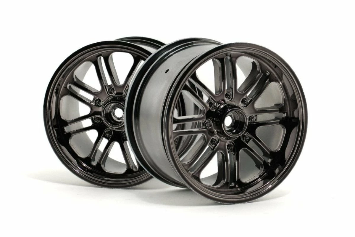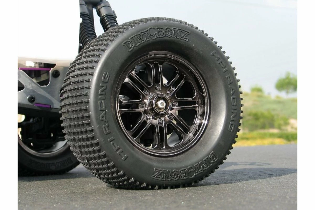 The HPI Racing 8 Spoke Wheels for the Savage, T-Maxx and E-Maxx monster trucks are now available in a Black Chrome finish. The new finish gives a unique dark tint to the highly reflective shiny chrome surface. The 8 Spoke design gives any monster truck a high tech look. Transform the look of your monster truck with a new set of HPI wheels!