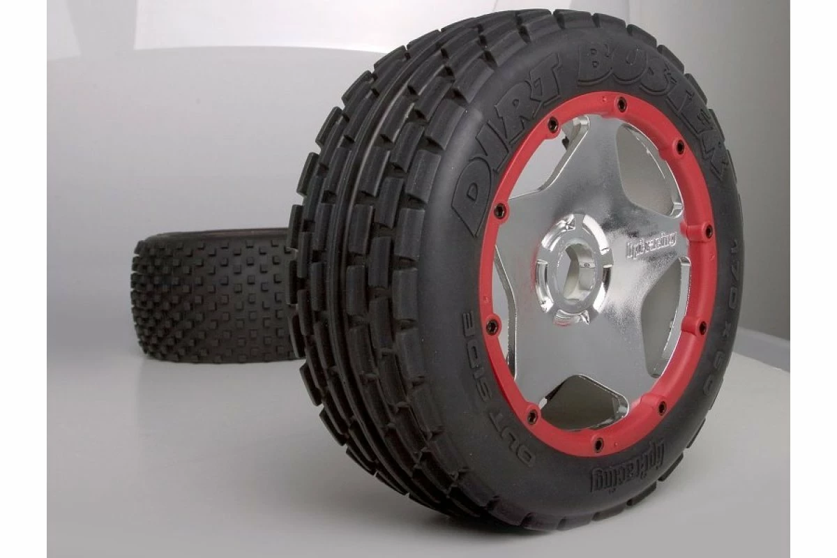 Special 3-piece bead lock wheels for the Baja 5B. A beadlock ring (not included) is bolted onto the wheel to securely hold the tyre in place. No glue is used to mount the tyres, which makes changing the tyres a simple task! Also, the wheels can be used again with new tyres.