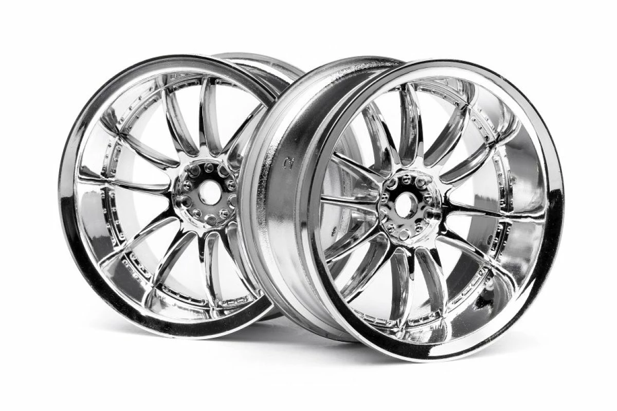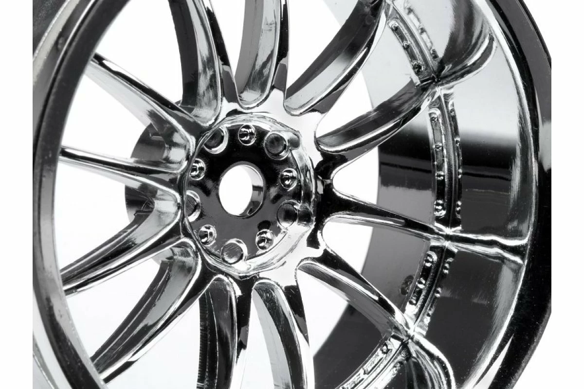 These wheels are available in 3mm, 6mm and 9mm offsets. 3mm offset gives a slightly wider stance to help fill out the wheelwells. Owners of 190mm electric cars can use our 6mm offset wheels if they want to use 200mm bodies. Throw on a pair of 9mm offset wheels for a super wide look. All standard 26mm touring car tires will fit on these wheels.ย