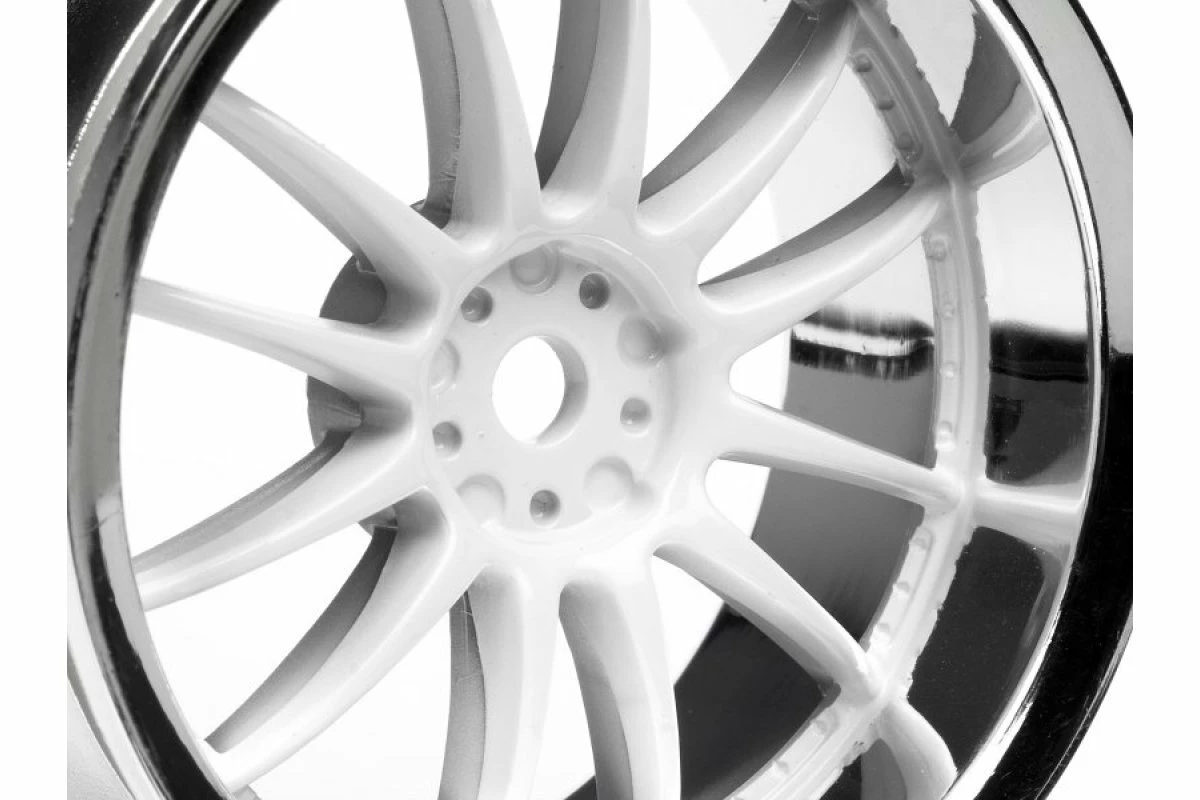 These wheels are available in 3mm, 6mm and 9mm offsets. 3mm offset gives a slightly wider stance to help fill out the wheelwells. Owners of 190mm electric cars can use our 6mm offset wheels if they want to use 200mm bodies. Throw on a pair of 9mm offset wheels for a super wide look. All standard 26mm touring car tires will fit on these wheels.