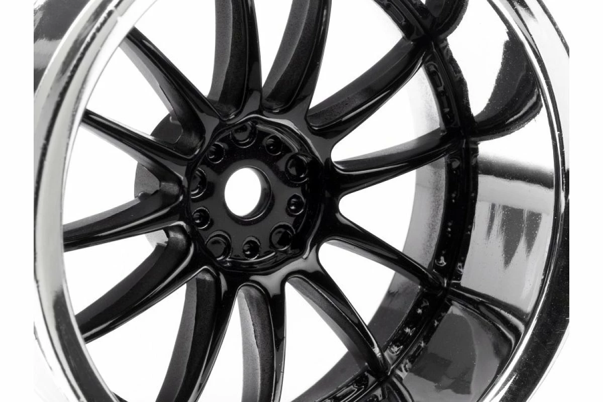 These wheels are available in 3mm, 6mm and 9mm offsets. 3mm offset gives a slightly wider stance to help fill out the wheelwells. Owners of 190mm electric cars can use our 6mm offset wheels if they want to use 200mm bodies. Throw on a pair of 9mm offset wheels for a super wide look. All standard 26mm touring car tires will fit on these wheels.