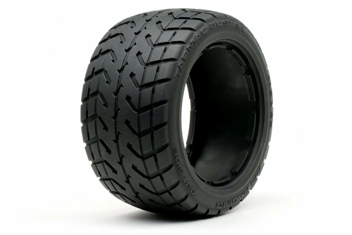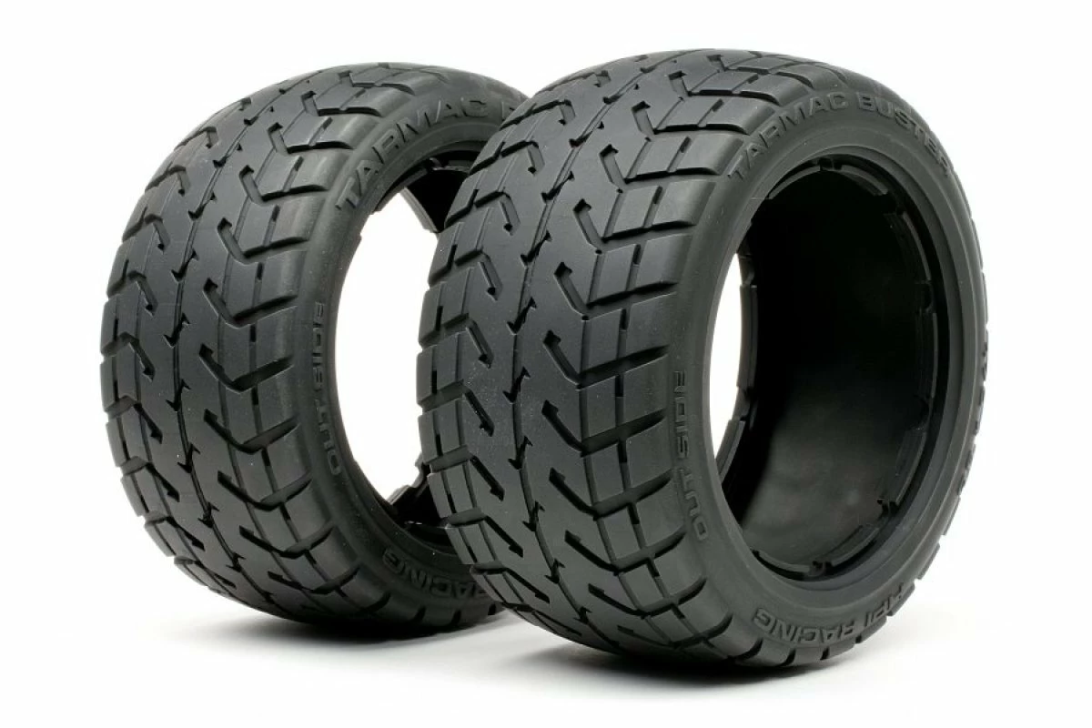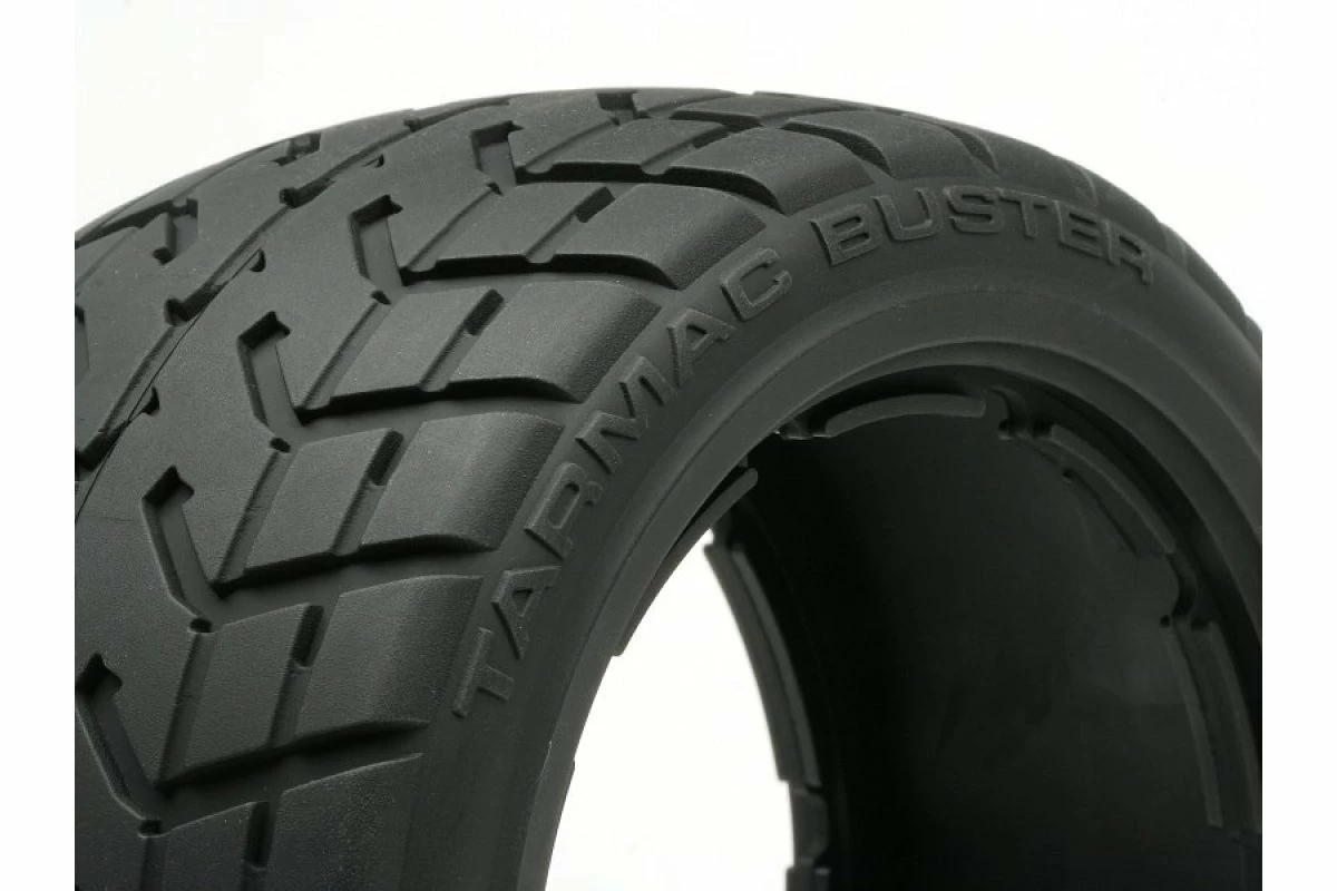Get ready for the tarmac terror! Equip your Baja 5B buggy with front and rear Tarmac Buster tyres for running on any paved surface! With great racing looks and a smooth, ‘shaved’ appearance, the Tarmac Busters not only look amazing on the Baja, they provide amazing performace as well! Be the envy of your racing buddies with the Baja Tarmac Busters! Note: inner foams are not included, Baja owners can re-use the #4812 moulded inner foams from previous sets of tyres, as these are very durable foams.