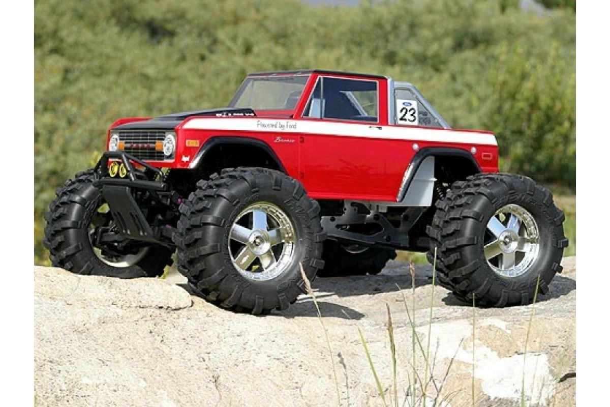 Available from HPI Racing is our brand new body for the Savage monster truck: the 1973 Ford Bronco! This classic “retro” off-roader is a popular vehicle for rugged outdoorsmen, baja-style desert racers and even on the street! This is a unique and one-of-a-kind body, unavailable from any other body manufacturer! This body will also fit T-Maxx and E-Maxx monster trucks.