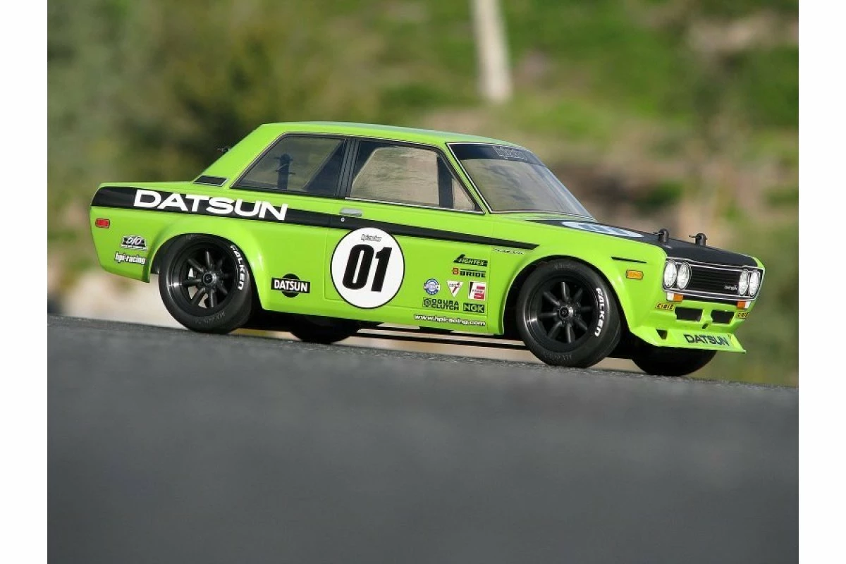 Now available for Cup Racer fans is this awesome Datsun 1600 body. Incredible scale realism makes the HPI Datsun 1600 body a virtual clone of the car that won the hearts of club racers around the world. Add your own paint and you’re ready to terrorize the field with this iconic vintage racer. Like all HPI bodies, the Datsun 1600 comes with a clear protective overspray film, window masks and a large decal sheet. Made of flexible vinyl to fit every curve on the body, the decal sheet includes official Datsun decals, headlights, tail lights, and door handles, plus official HPI Racing logos! The body also has drill locations marked for HPI Cup Racer cars, making it easy to line up the body mount and antenna holes.